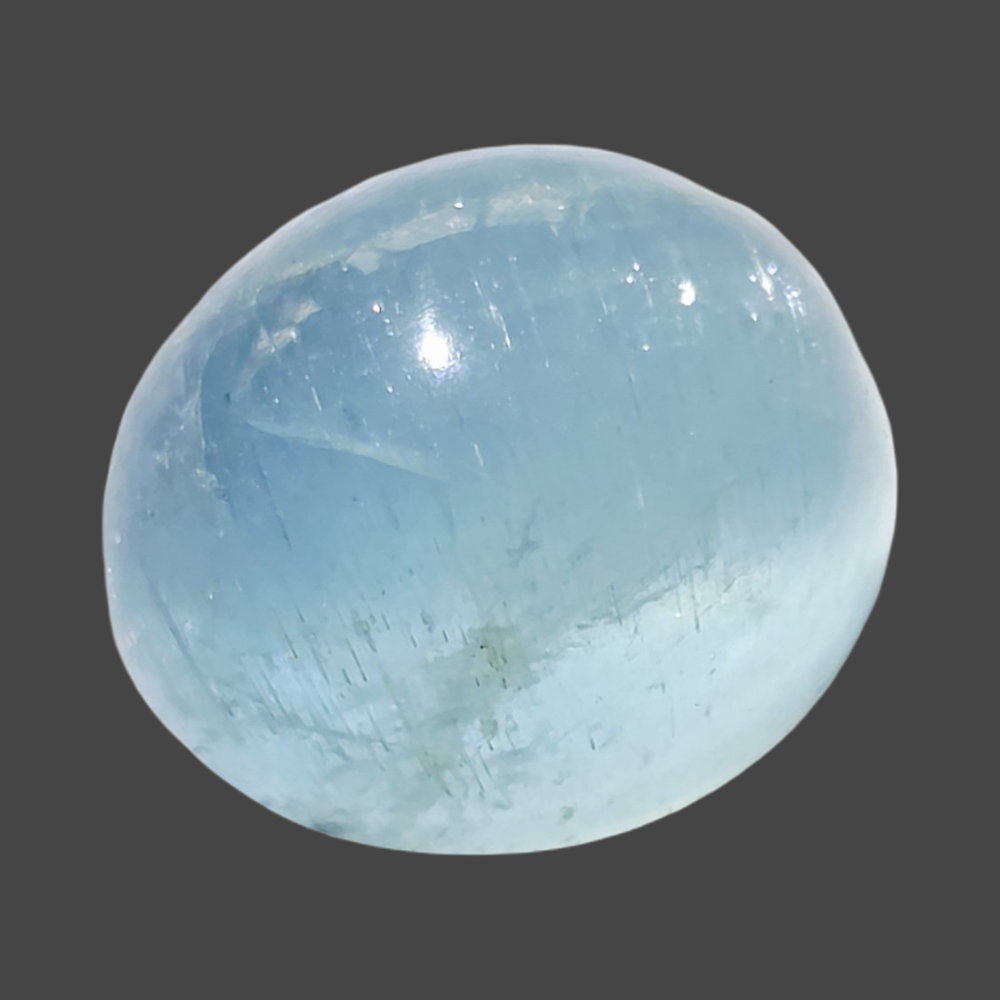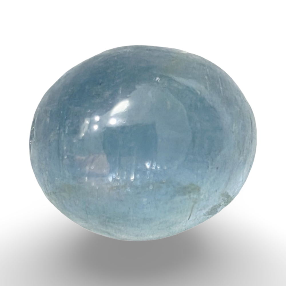 Natural Aquamarine in a polished cabochon cut, displaying a beautiful light blue color with a smooth, glossy surface. Known for its clarity and soothing tone, this gemstone is ideal for fine jewelry and elegant designs.