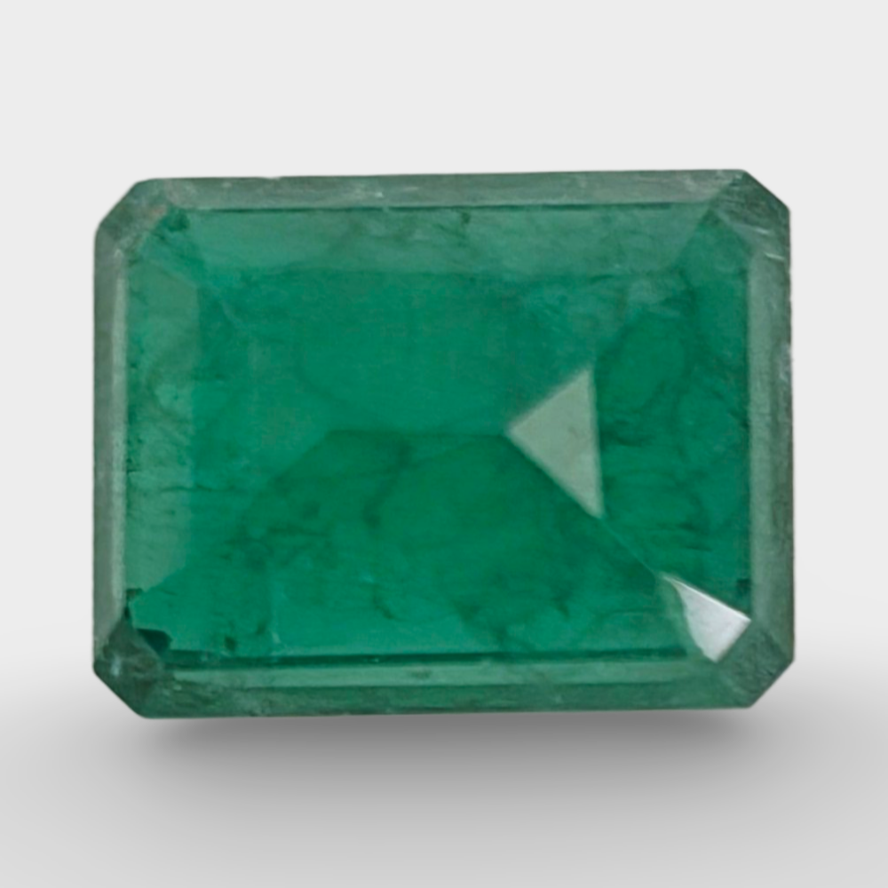 A natural Zambian emerald featuring a soft light green tone with visible natural inclusions, reflecting its genuine origin and natural crystal character.
